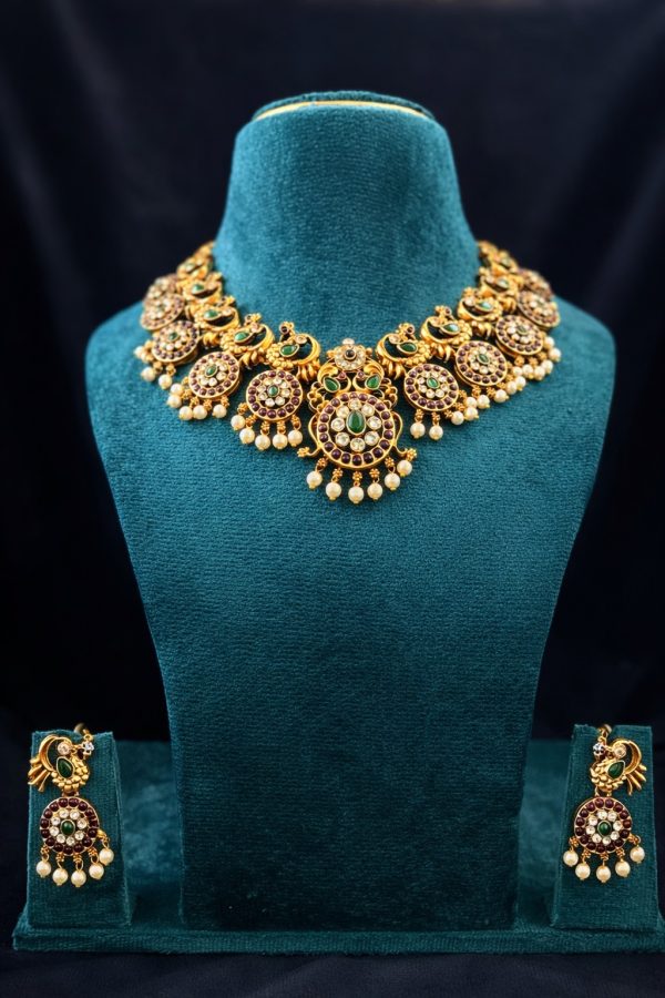 Traditional Peacock Motif Choker Set – Ruby Emerald Stone Work